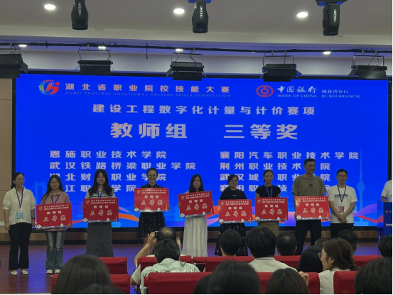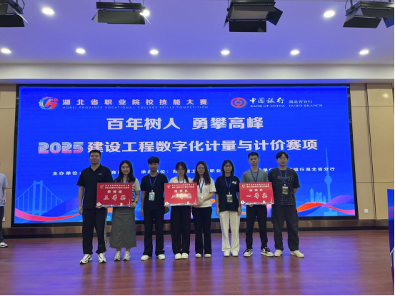 7月4日,2025年湖北省职业院校技能大赛高职组“建设工程数字化计量与计价”赛项在湖北国土资源职业学院圆满落幕。建筑工程学院教师殷秋雨、汤东桑带领学生涂德旺、孙政政、刘梦尘荣获抽测队第二名(一等奖);学生周梦月、张文耀、曹设轩荣获推荐队第六名(二等奖);此外,教师组也斩获三等奖。