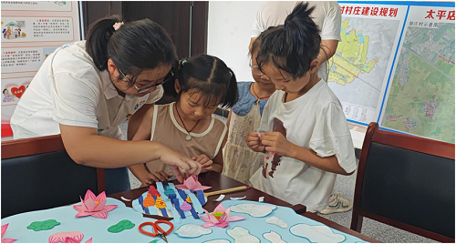 实践团结合自身专业背景,充分利用智能制造领域的创新思维,为当地村民组织了一场蕴含绿色理念的剪纸活动。在活动现场,实践团成员们向村民展示了以绿色发展为主题的剪纸作品,这些作品不仅呈现出传统剪纸艺术的精美,更融入了现代绿色生活的元素,是践行绿色生活方式的具体体现。村民们在实践团的引导下,积极参与,将平平无奇的纸张变成了富有寓意的剪纸作品,在感受传统艺术魅力的同时,也深刻领悟到绿色发展就在身边,从日常生活的点滴小事中就可以为环境保护贡献力量。
