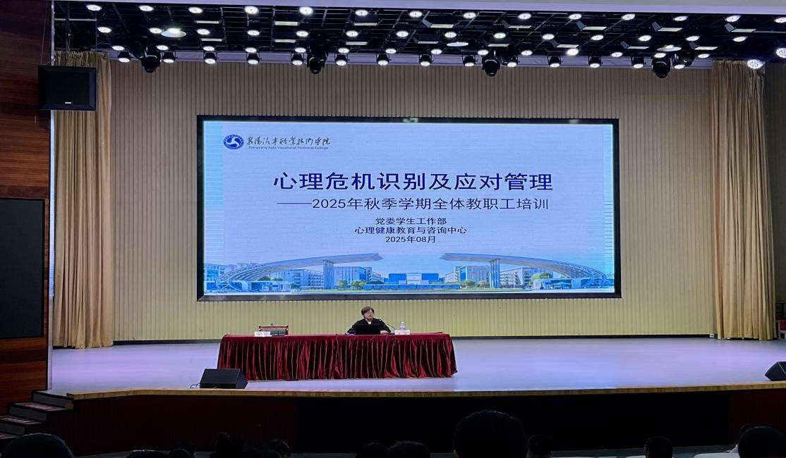 为提升我校教师心理危机识别与干预能力,2025年8月27日下午,我校在科学会堂举办了心理危机干预专题培训讲座。本次讲座由心理健康教育与咨询中心主任方青老师主讲,全校教职工参加了培训。