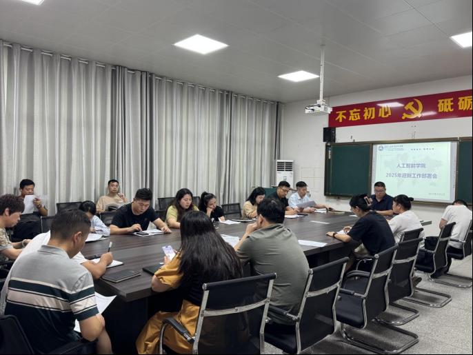 为确保2025级新生报到工作的顺利进行,9月4日-5日下午,在3-207会议室召开2025年迎新工作安排部署会及25级新生班主任工作会议。人工智能学院院长胡德洪、党总支书记闫武起、党总支负责人贾江波、副院长陈露、张梦帆、李静雯、各新生班班主任及迎新工作领导小组成员参加会议。会议由闫武起主持。