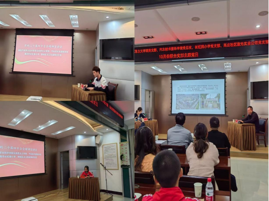 活动最后,襄阳汽车职业技术学院马克思主义学院党支部、汽车技术服务学院党总支与高庄社区蓝光实业公司党支部、长虹路小学党支部联合开展主题党日活动。全体党员庄严重温入党誓词,围绕“党建引领、思政教育与社区发展深度融合”展开专题研讨,明确了校社协同育人的核心方向与实践路径,并达成三大长效共建共识,为后续常态化合作奠定基础。