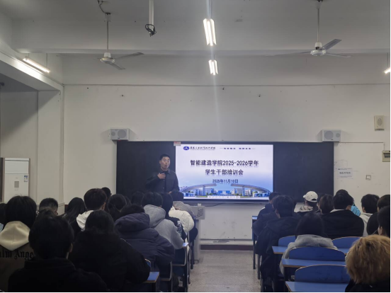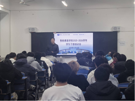 为进一步加强学院学生干部队伍建设,提升学生干部的综合素质与履职能力,充分发挥学生干部在学院发展和学生管理中的桥梁纽带作用,2025年11月10日,智能建造学院党总支负责人沈毅以“如何做一名优秀的高校学生干部”为主题,为全院学生作了一场专题培训会。