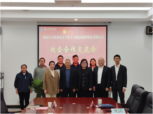 11月11日,楚能新能源股份有限公司一行莅临我校开展以“校企合作、人才培养”为主题的校企交流会。党委委员、副校长彭铁山,汽车智能制造学院院长孙莉、书记马春亮、副院长刘云飞,以及机械制造及自动化、机电一体化技术、汽车制造与试验技术、工业机器人技术等专业研究室主任,楚能新能源股份有限公司(总部)人力资源总监姜嫦、襄阳基地副总经理范志伟、总部人力资源部培训部长曾翔逸、襄阳基地人力资源部长周坤龙等领导参会。此次会议旨在进一步加强企业与学校的深度合作,共同探索人才培养新模式,为新能源行业输送更多高素质技术技能人才。交流会由汽车智能制造学院副院长刘云飞主持。
