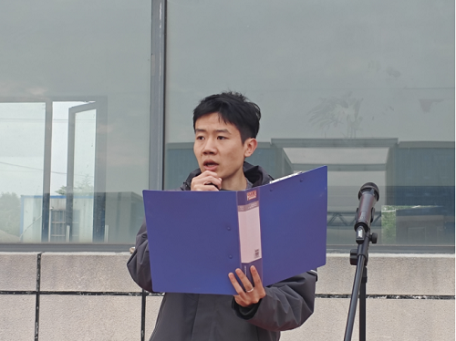 入场仪式结束后,全场肃立,举行升国旗、奏唱国歌仪式。雄壮的国歌声回荡在运动场上空,深深感染着每一位师生。随后,学院党总支书记马春亮致辞。他首先回顾了院系近一年来在学生技能竞赛、优质课程开发等国家级成果建设方面取得的突出成绩,并指出本届运动会既是展示体育精神的舞台,更是向学校七十华诞献礼的重要载体。马春亮强调,学院近年来通过深化“党建+”融合机制,着力打造“智洁行芳”育人品牌,积极推进非遗实践基地建设,持续推动文化育人工作走深走实,逐步形成了以高质量党建引领事业高质量发展的良好局面。最后,他勉励全体运动员弘扬“更快、更高、更强、更团结”的奥林匹克精神,在比赛中赛出风格、赛出水平,将赛场上的拼搏精神转化为今后学习与成长的内在动力,以实际行动为学校发展贡献青春力量。
