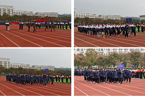 朔风渐起,冬意初临。11月10日上午,我院秋季运动会在学校田径场隆重开幕。学校党委委员、副校长彭铁山,学校党委委员、纪委书记李剑,各相关职能部门负责人及各二级学院党总支书记参加了开幕式。全院师生齐聚运动场,以饱满的精神面貌共同迎接这场激情飞扬的体育盛会,用青春与朝气奏响了运动会的精彩序章。