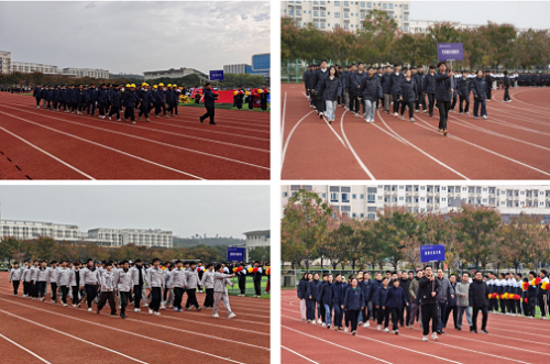 伴随着激昂的《运动员进行曲》,国旗护卫队率先迈着铿锵有力的步伐入场,五星红旗迎风飘扬,彰显出家国情怀与崇高使命;校旗与院旗方阵紧随其后,步伐坚定,展现出学院的荣誉与担当;各专业代表队身着统一服装,精神抖擞、口号嘹亮,尽显青年学子的蓬勃朝气;教师裁判方阵神情庄重、步履稳健,传递出公正执裁、严谨规范的赛事理念。