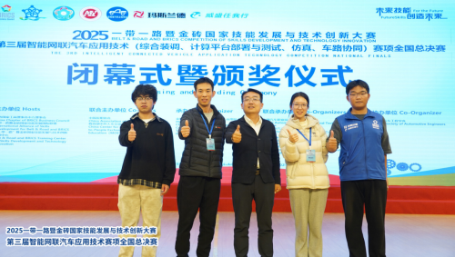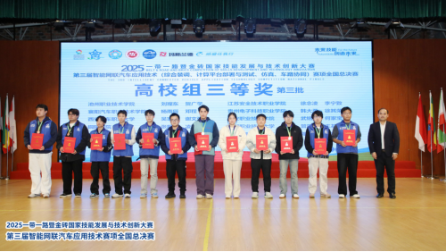 11月9日,为期三天的2025一带一路暨金砖国家技能发展与技术创新大赛第三届智能网联汽车应用技术(综合装调、计算平台部署与测试、仿真、车路协同)赛项全国总决赛圆满落幕。在缺乏专业训练设备的艰苦备赛条件下,我校代表队凭借扎实的专业功底与顽强的拼搏精神逆势而上。在与全国190支参赛队伍的激烈角逐中,我校代表队脱颖而出,一举斩获职工组二等奖、高校组三等奖。这一成果不仅彰显了学校在智能网联汽车领域深厚的专业教学积淀,更充分展现了师生团队卓越的创新思维与扎实的实践能力。