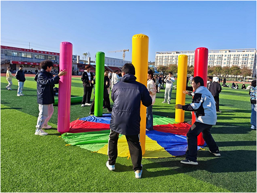 与传统运动会不同,本次活动强调“参与、合作与成长”,将心理健康理念融入“毛毛虫竞速”“同心搭建”“不倒森林”等趣味项目中,引导学生在协作中体验快乐,实现心灵疗愈。