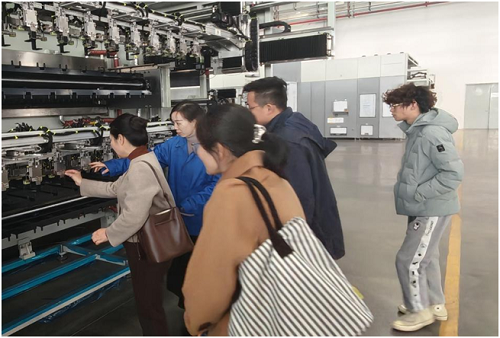 在赵又贤科长带领下,调研团队参观工厂装配调试厂区,近距离了解非标柔性装配线运转、机器视觉检测设备作业及伺服系统调试等环节。赵科长介绍企业工艺优化、设备设计成果,强调非标领域对“机械设计+电气控制+软件编程”复合型技能的需求。