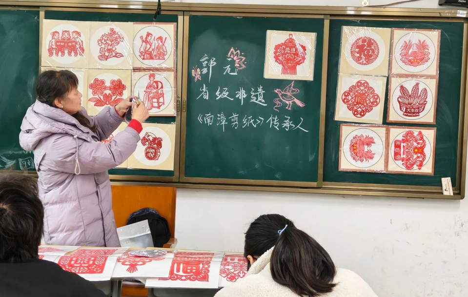 冬日的暖阳斜照窗棂,映亮了一室专注的眉眼与翩跹的红纸。12月3日,襄阳汽车职业技术学院人工智能学院“芯生代”非遗工坊第五期课程,迎来了剪纸非遗传承人郭元。她以天地为谱,节气为章,带领学子们执起手中利剪,将流转的时光与心中的意象,凝固于一纸玲珑之中。