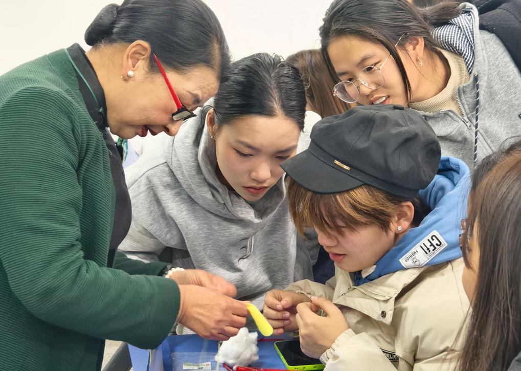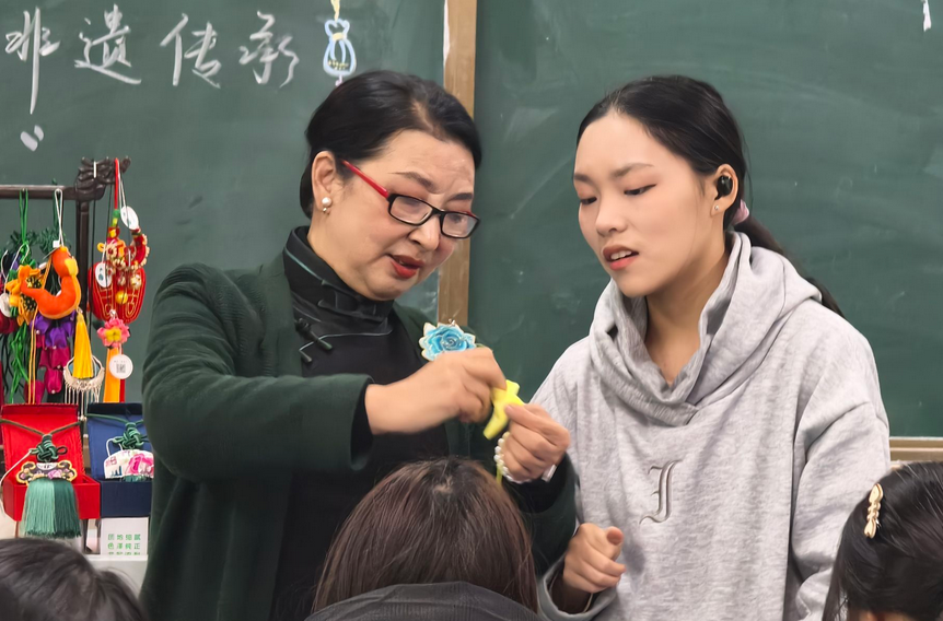 冬月午后,丝线流光,细密的针脚再次牵起一场与时光的温柔对话。12月4日,襄阳汽车职业技术学院人工智能学院“芯生代”非遗工坊第六期课程,再次迎来了同学们熟悉的“老朋友”——襄阳香包非遗传承人崔明凡老师。