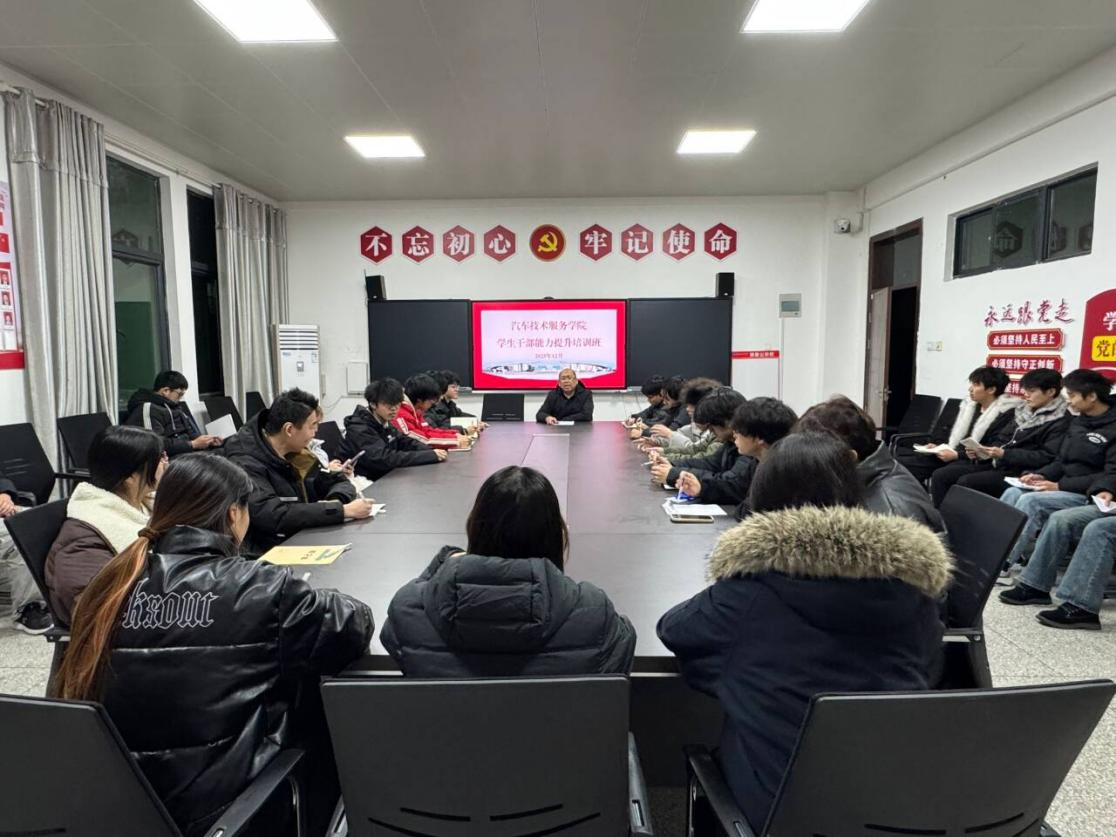 为系统提升学生骨干综合素养,打造高素质学生干部队伍,12月22日,汽车技术服务学院学生干部能力提升培训班正式启动,首场专题培训在2号教学楼211会议室举行。学院党总支书记柴长富以“明纪律、勇担当、做表率——锻造新时代高素质学生骨干队伍”为主题,为全体学生干部带来第一讲。