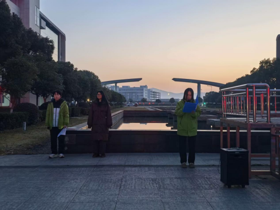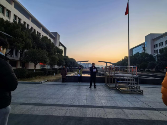 晨曦微露,朝阳初升,12月25日,智能建造学院“筑牢防诈防骗,守护平安青春”主题升旗仪式在红旗广场举行。