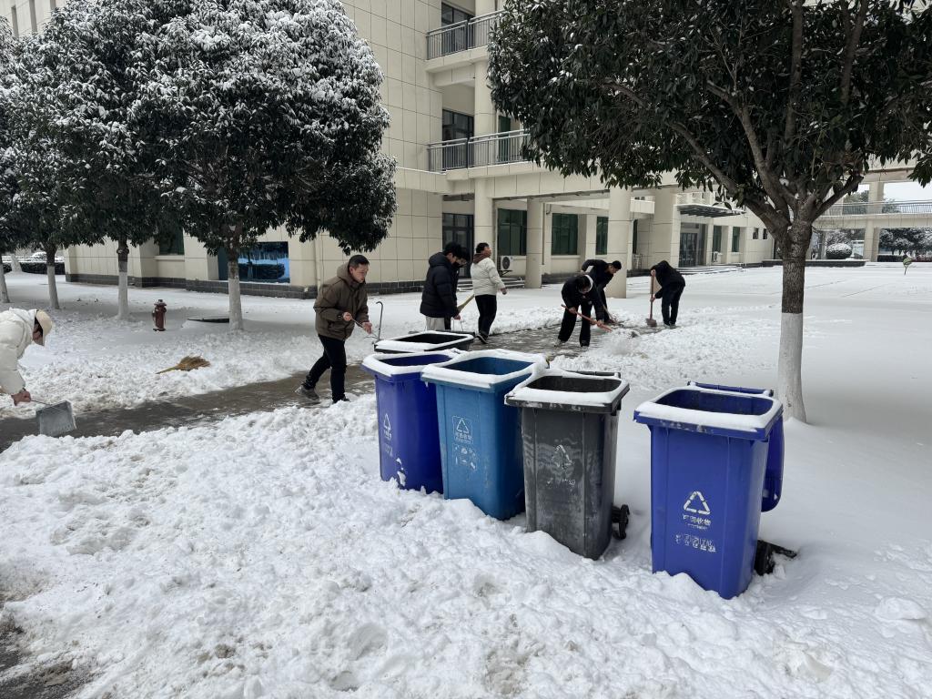 经过近一小时的持续努力,教学楼门前的积雪被彻底清理干净,开辟出了一条宽阔、安全的通行道路,有效消除了师生滑倒摔伤的风险,保障了教学科研活动的正常秩序。
