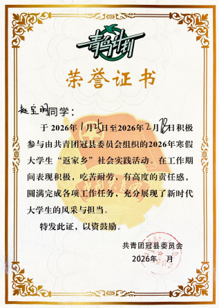 为了深入推进助力学生成长工程,切实架设起青年与故土、理论认知与社会实践之间的坚实桥梁,2026年寒假期间,交管学院精心策划了寒假“返家乡”社会实践活动。活动旨在引领全院学子将青春热血挥洒在为人民服务的生动课堂,将所学才智贡献于社会发展的时代洪流,让青年力量与家乡发展同频共振,共同绘就乡村振兴与民族复兴的壮美画卷。在众多参与者的共同努力下,一系列丰富多彩、意义深远的社会实践活动在各地如火如荼地展开。