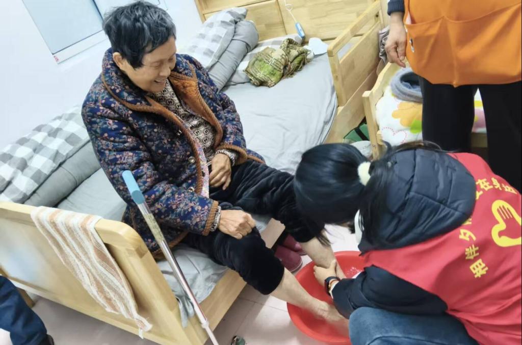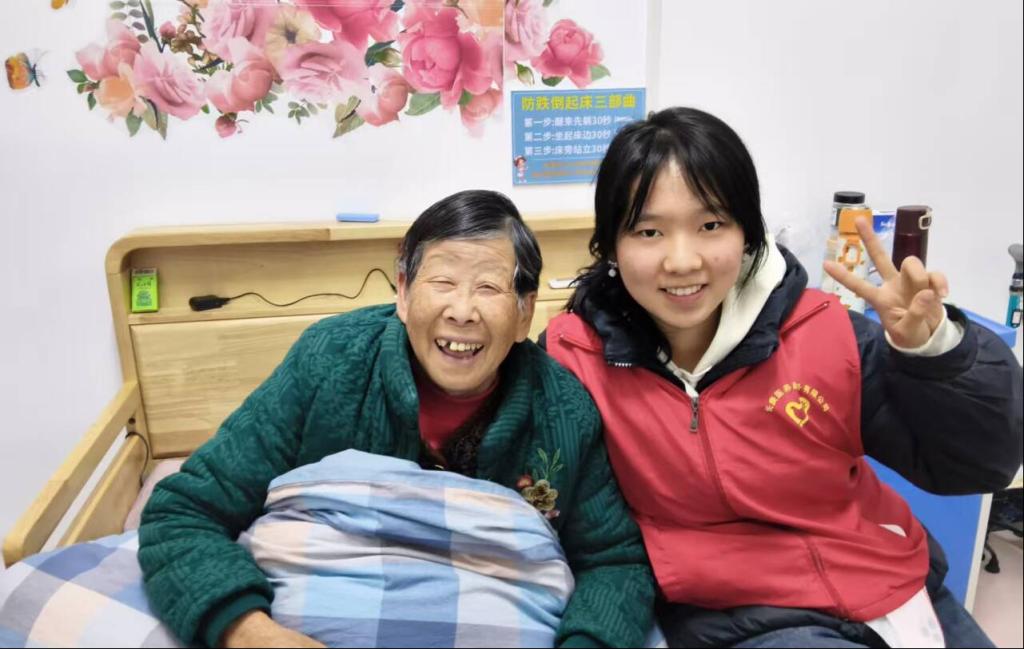 张诗君同学走进社区养老服务中心,成为护工们的得力助手。她不怕脏、不怕累,认真协助进行卫生清扫,擦拭门窗、整理床铺,为老人们营造整洁舒适的生活环境。工作之余,她主动陪老人聊天、搀扶老人散步,用青春活力温暖了老人们的心。她的细心与耐心,让这个冬天不再寒冷。