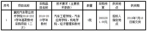 湖北建正工程咨询有限公司受襄阳汽车职业技术学院的委托,决定就襄阳汽车职业技术学院2019-2020学年高职教材采购项目(二次)进行公开招标,现欢迎符合条件的合格投标人参加。