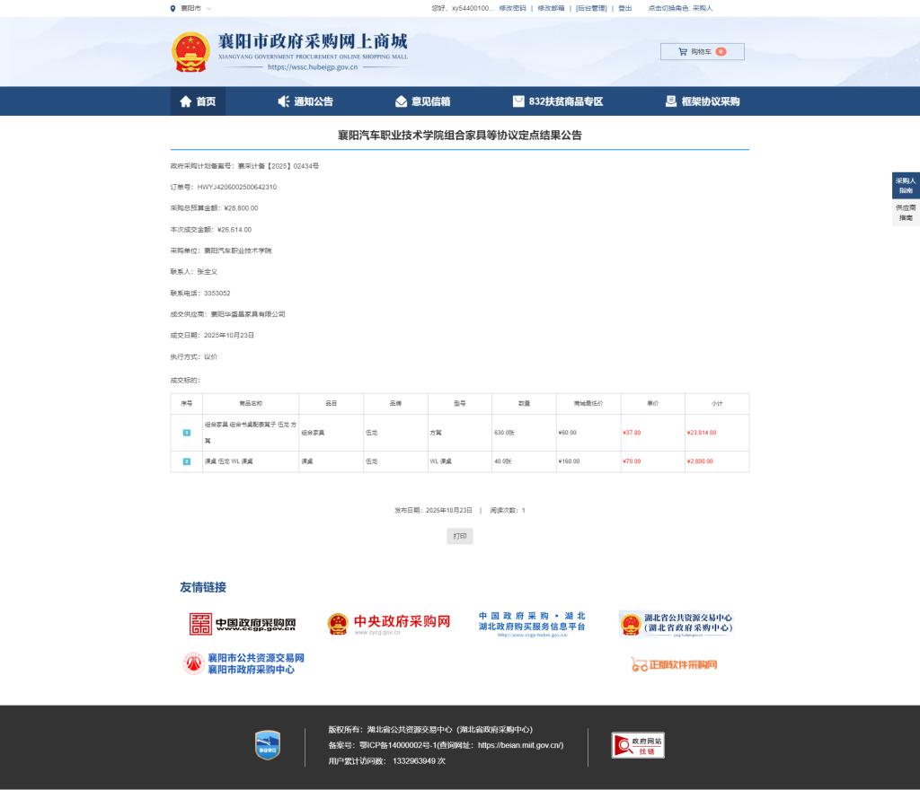 2025年学校部分课桌、课椅采购协议定点结果公告