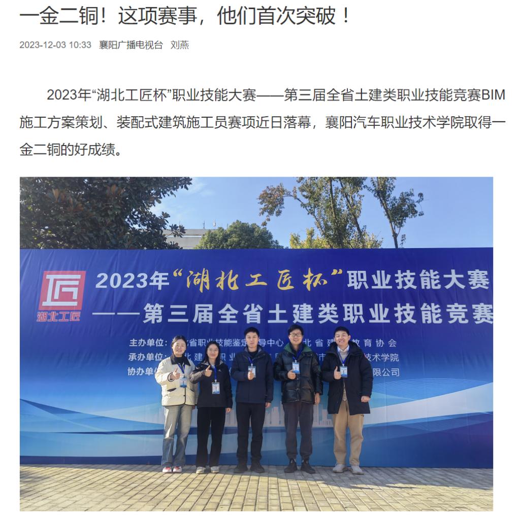 2023年“湖北工匠杯”职业技能大赛——第三届全省土建类职业技能竞赛BIM施工方案策划、装配式建筑施工员赛项近日落幕,襄阳汽车职业技术学院取得一金二铜的好成绩。