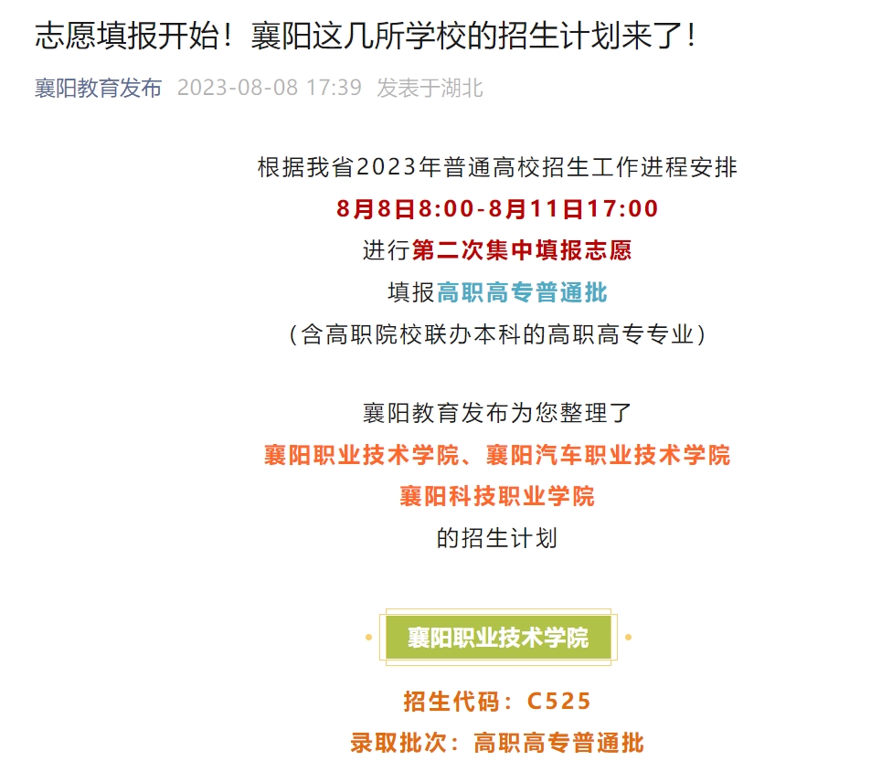 襄阳教育发布为您整理了