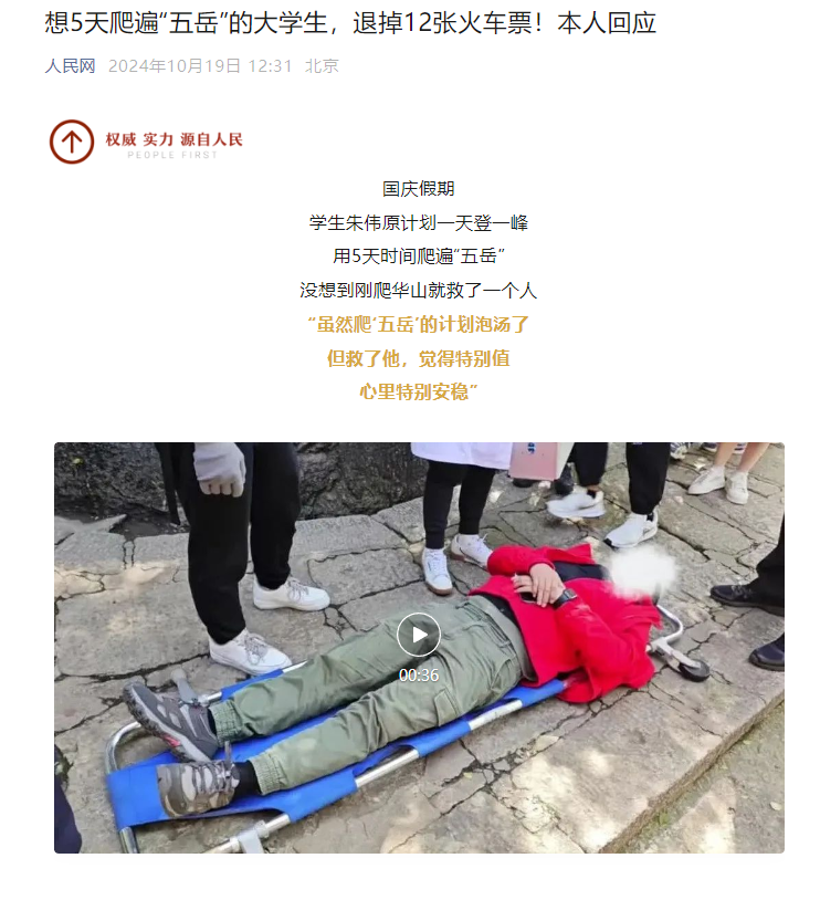没想到刚爬华山就救了一个人