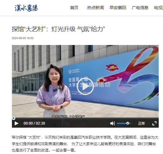 带你探馆 “大艺村”,今天我们来到的是襄阳汽车职业技术学院。在大艺展期间,这里会为大学生们提供朗诵和戏剧表演的舞台, 为了让大家来这儿能有更好的表演体验,咱们对舞台也是进行了全面的改造。一起去看一看。