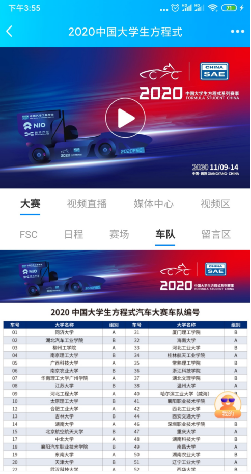 2020年11月9-14日,中国汽车工程学会主办的2020中国大学生方程式系列赛事在湖北襄阳召开,我校“梦启车队”积极参加,期待佳绩。