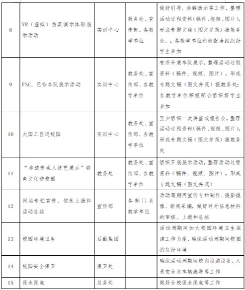 3.11月1日前,教务处负责向省教育厅提交我校职业教育活动周方案、宣传栏(网站)地址、联络员联系方式等信息。
