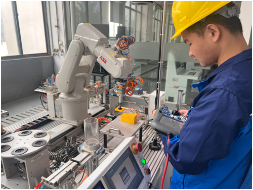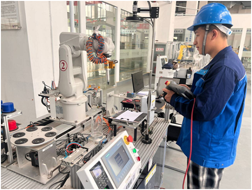 在工业机器人数字孪生工作站中,学生可以在虚拟环境中反复调试程序,再通过实体设备验证效果,既保证操作安全,又能提升学习效率。目前该教学模式已应用于工业机器人编程、工业机器人集成等核心课程,帮助学生实现从理论到实践的无缝衔接。