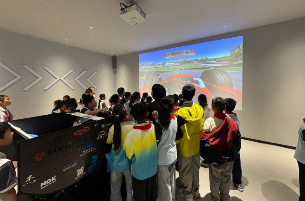 在讲解员的引领下,同学们系统参观了FSC方程式赛车展区,全面了解了整车结构的演进历程。该展馆打破传统场馆的空间限制,将精彩的汽车竞速文化直接带入校园。馆内不仅陈列了经典赛车原型,更设置了模拟赛车体验区。在这里,同学们不仅能学习赛场上的规则,还能通过沉浸式体验领略汽车竞速的独特魅力,吸引了众多中小学生积极参与,极大地激发了他们对汽车科技的浓厚兴趣。