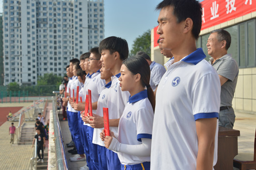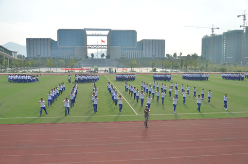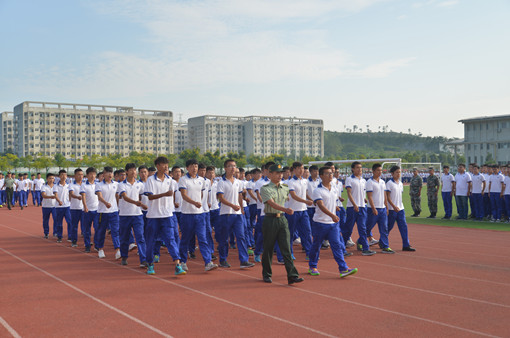 2017级新生喊着响亮的口号,迈着铿锵有力的步伐进入运动场。分列式演练上,他们行军礼,以军人的标准严格要求自己;军体拳表演中,他们整齐划一、强劲有力。