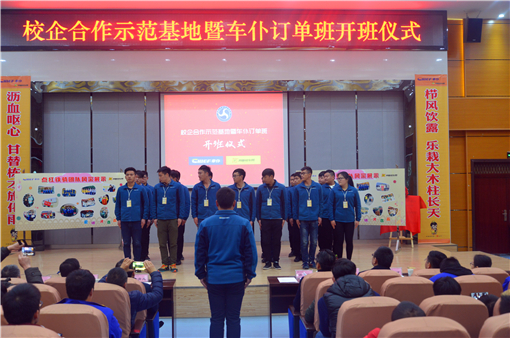 许云同志首先介绍了我校的办学战略、办学理念、办学特色和办学成绩,对与车仆集团开展的订单培养表示充分肯定,他指出:实施订单培养、协同育人、推进现代学徒制是人才培养模式改革的永恒主题,“产教融合、校企合作,订单培养,互动发展”是实现企业、学校效益最大化的必由之路。同时,对今后推进订单班工作提出了要求:他希望订单班的同学们珍惜机会,不断提高自己的技能水平和职业素养,才有机会效力于车仆控股,成长为优秀职业人;希望合作的二级学院加强服务,实现产学结合,培养出更多更优秀的、符合汽车行业发展需要的技术技能人才;建议车仆控股集团以此为起点,拓宽合作领域,加大合作力度,共同为合作专业的建设与改革创造最佳契机。