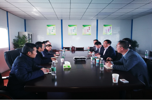 图为我院许书记一行与九洲新能源汽车项目组的领导交流