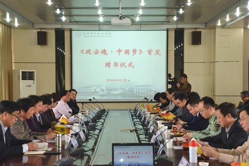 继“世界读书日”、我市“全民阅读”活动启动之后,市延安精神研究会编辑出版了《延安魂·中国梦》一书。此次活动的目的旨在配合社会主义核心价值观教育,让延安精神进机关、进校园、进企业、进军营、进社区、进农村,凝聚起实现中国梦的强大力量。本次首发赠书仪式捐赠书籍共计3520册。
