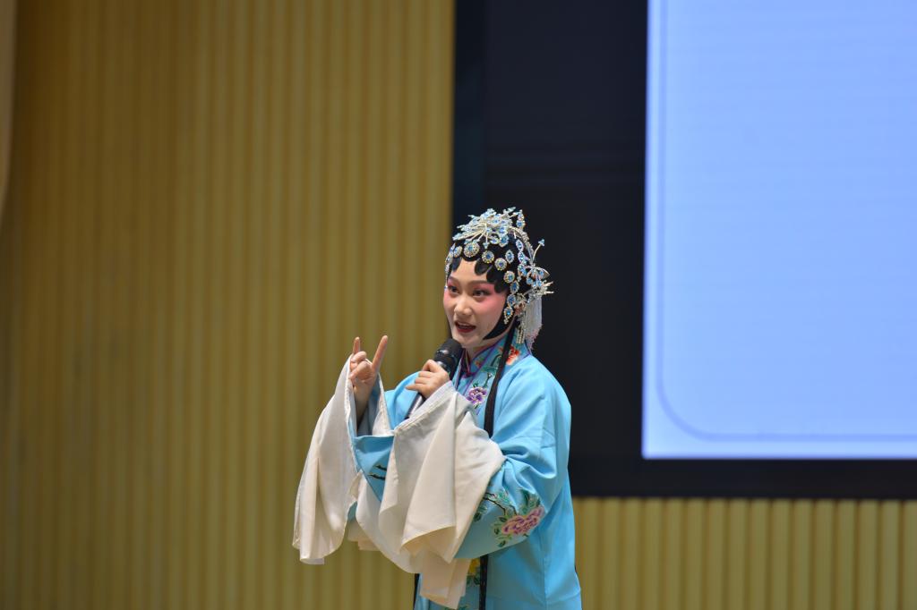 伴随着悠扬的音乐,《点亮未来》、《我和我的祖国》、《变脸》、《文明在身边》、《时代的勇气》等经典曲目,将现场气氛推向高潮。精致的妆容、婉转的唱腔、灵巧的身段、动人的情节,赢得了现场师生的阵阵掌声和惊叹声。在一颦一笑、一招一式中,师生们被戏曲的魅力感染,优美经典的传统戏曲滋润着每个人的心灵。