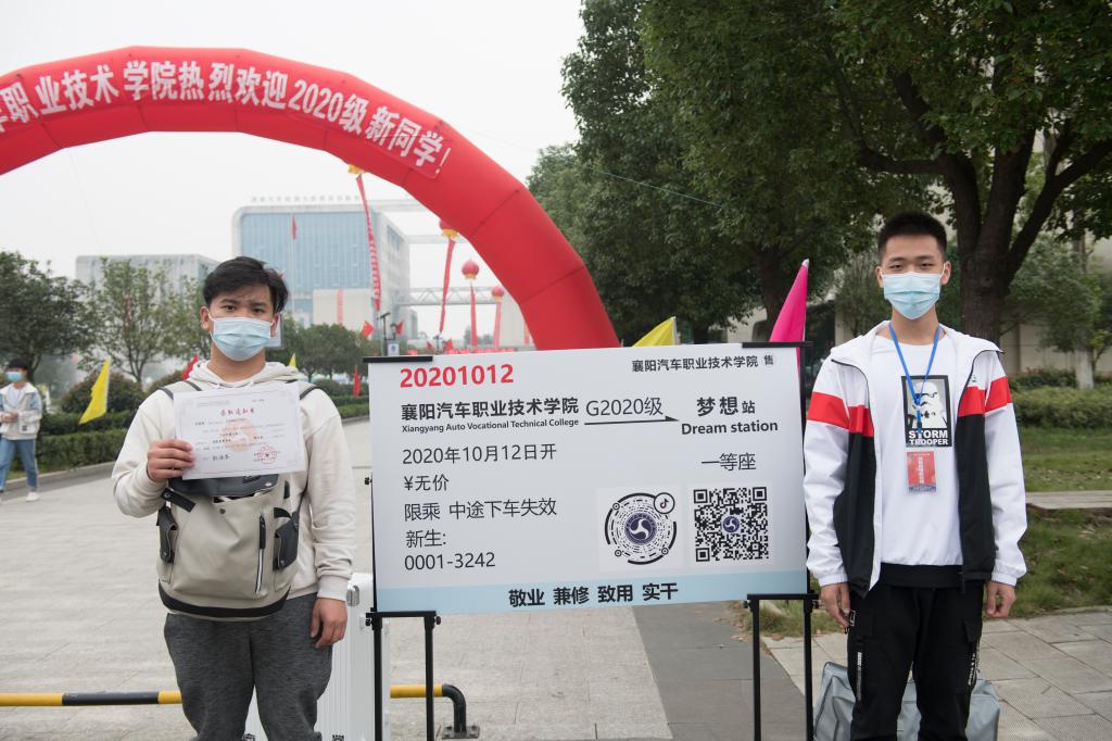 早7时,校园各接待点人声鼎沸,接送校车定时发出,迎新工作人员按时就位,新生于校门口排队间隔1米有序通行。