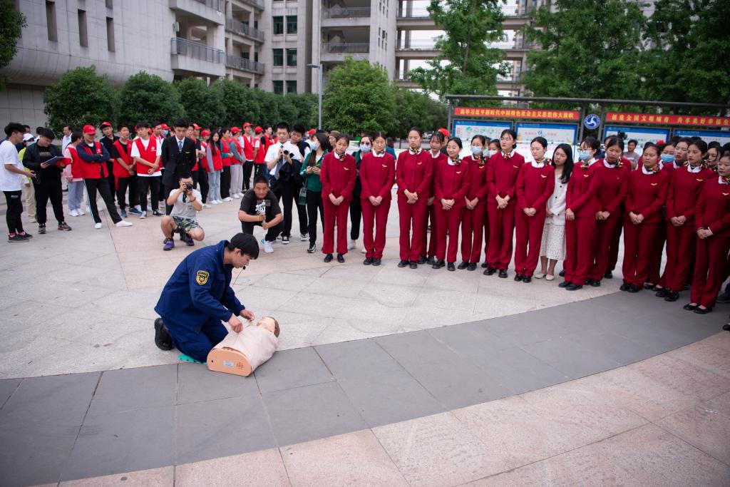 演练结束后,襄阳市共公安安全体验馆工作人员在现场对参演师生开展了的心肺复苏、应急救援等培训。