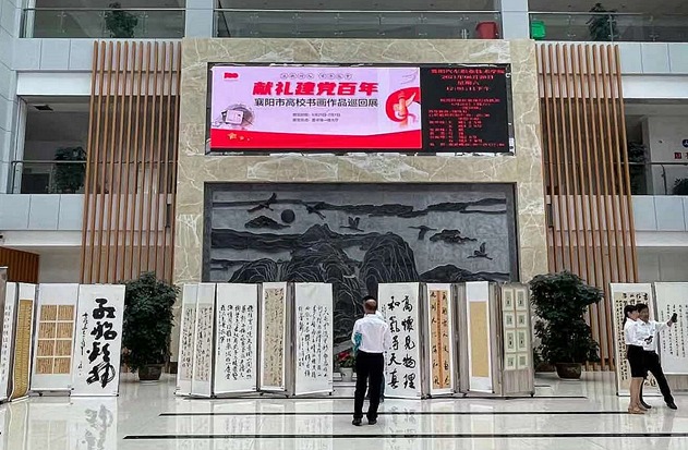 为庆祝中国共产党成立100周年,以多种形式开展好党史学习教育,深情回顾中国共产党艰苦卓绝的创业历程,热情讴歌建党百年来取得的辉煌成就,6月26日,由襄阳市书法协会和襄阳汽车职业技术学院联合举办的“立德树人 百年筑梦——献礼建党百年襄阳市高校书画作品巡回展”在襄阳汽车职业技术学院图书馆一楼开展。