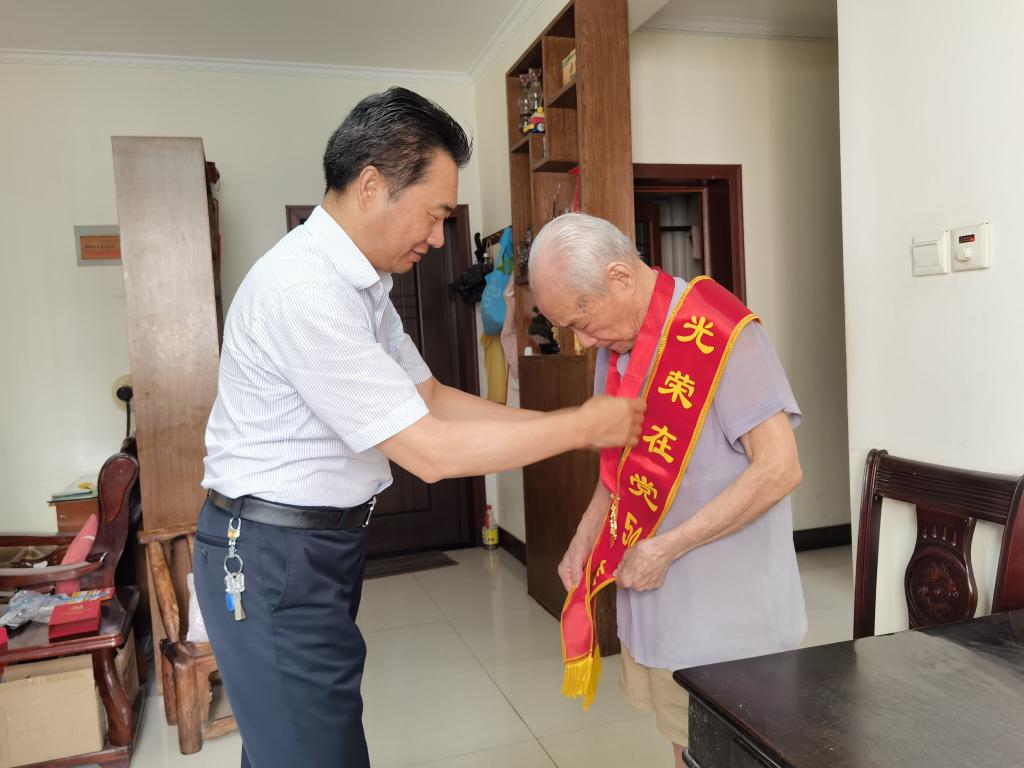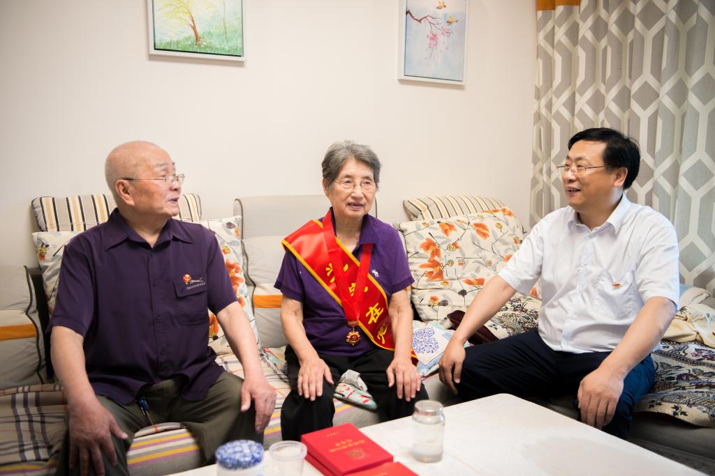 在“七一”建党节暨党的百年华诞来临之际,6月27日,学院党委书记许云、院长耿保荃走访慰问获得光荣在党50年勋章的老党员、老领导和80岁以上的老党员。向老党员和生活困难党员致以诚挚的问候,将党组织的温暖和关怀送到老党员们心中,感谢他们多年来为学院发展所作出的贡献,叮嘱他们保重身体,并勉励他要不忘初心,发挥余热,继续为学院高质量发展建言献策。