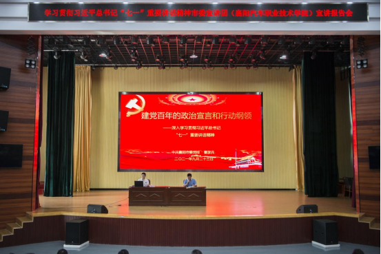 9月23日,学习贯彻习近平总书记“七一”重要讲话精神报告会在我校科学会堂举行,中共襄阳市委党校党史党建教研室主任、习近平总书记“七一”重要讲话市委宣讲团成员曹彦兵作宣讲报告。
