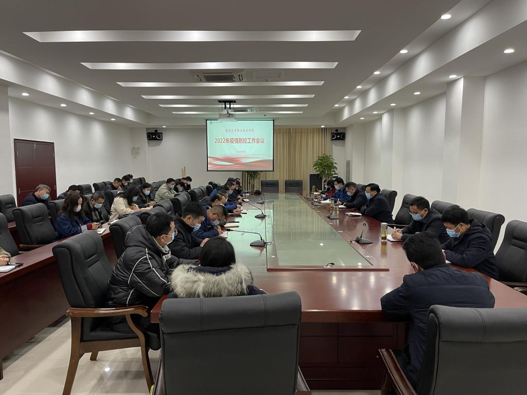 3月21日上午,我校召开疫情防控工作推进会。会议学习了习近平总书记在中央政治局常委会会议上对疫情防控工作部署的重要讲话精神,传达了省委省政府、省教育厅和襄阳市委、教育工委关于疫情防控的最新部署,并针对当前疫情防控新形势、新问题对学校疫情防控工作进行再安排、再部署,落实落细疫情防控工作,确保学校平安有序。副院长管用才主持会议,学校疫情防控工作领导小组成员及相关单位、部门负责人参加会议。