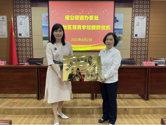 曹鸿霞为闸口社区教育学校授牌。