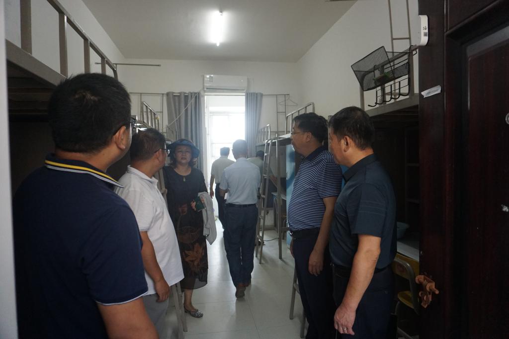 耿保荃一行先后到学生公寓、食堂、市人才公寓学生用房检查指导工作,查看各处疫情防控措施落实和开学各项准备工作,现场听取相关单位负责人的汇报并提出工作要求。