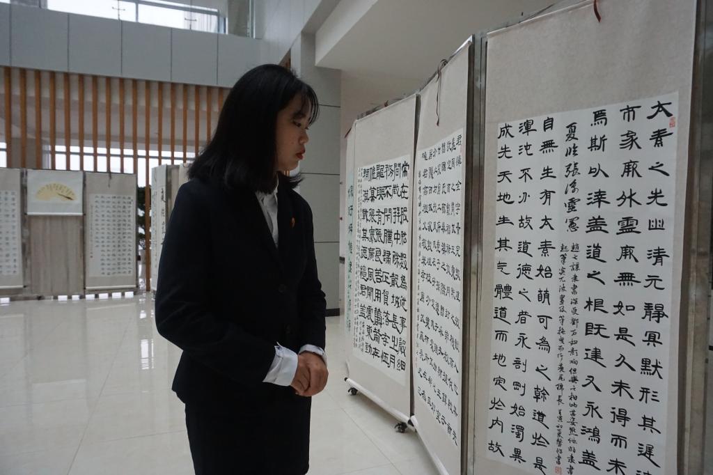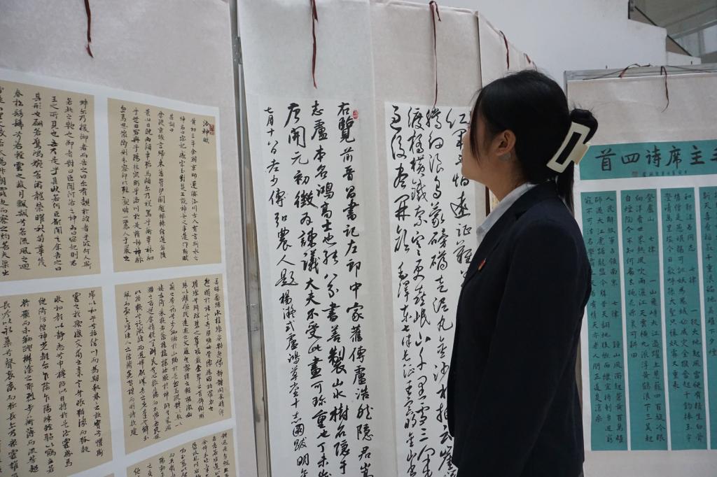 本次展览不仅为广大师生提供了展示和交流的平台,更将书法教育、美育与思想政治教育有机结合,教育和引导学生践行社会主义核心价值观。活动充分展现了我市高校在书法教育、美学教育、思政教育诸方面取得的成果,相信也一定能激励广大师生在坚定文化自信、坚持文化传承与创新方面取得更大成绩!(摄影:大学生记者团)