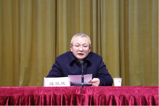 蒋双成同志作重要讲话,他对程传红同志任职襄阳汽车职业技术学院党委委员、副院长期间做出的重要贡献给予充分肯定和高度评价,同时也希望全体党员干部切实增强大局意识、党性观念,把思想统一到市委的决定上来,全力支持程传红同志的工作,共同推动学校教育事业高质量发展。就学校下一步发展建设,蒋双成同志提出三点要求,一要旗帜鲜明讲政治,坚持正确办学方向;二要勠力同心讲团结,凝聚干事创业的强大合力;三是勇于担当讲作为,奋力开创新局面。