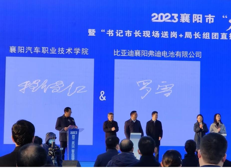 学校党委副书记、校长程传红代表学校应邀参加了本次活动。并在现场与比亚迪襄阳弗迪电池有限公司签订了校企合作协议。下一步,双方将围绕共建产业学院、人才培养培训、技能鉴定等方面开展深入合作。