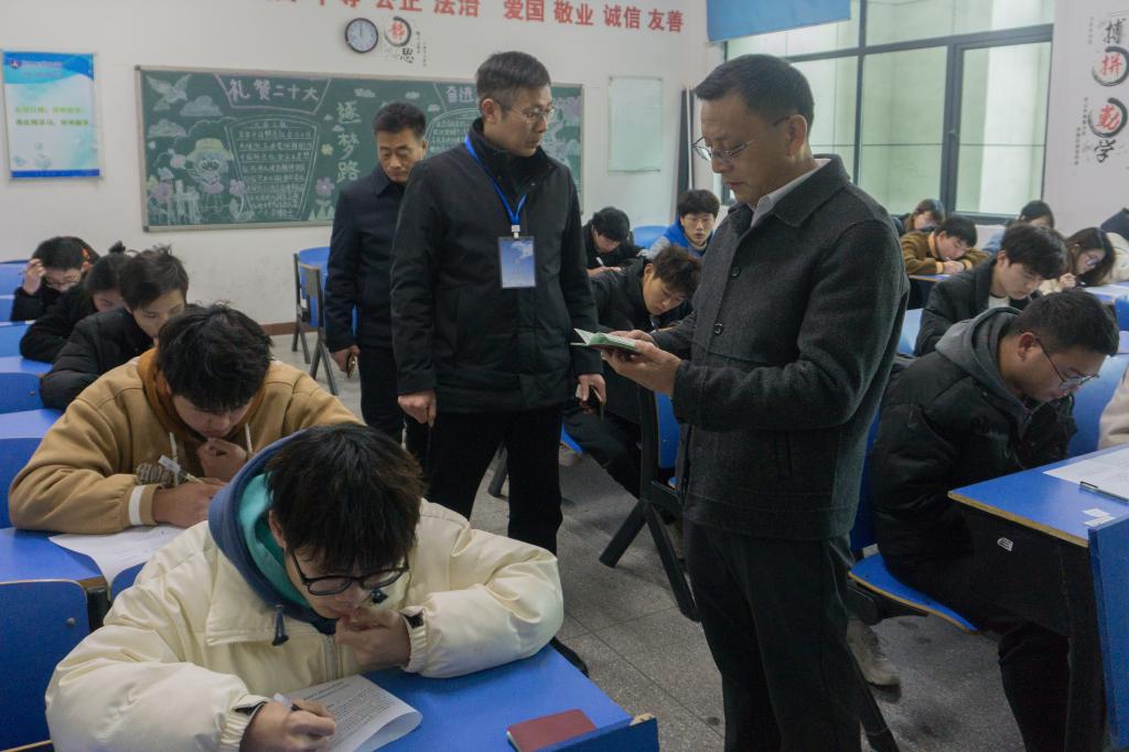 2月20日上午,我校开展2022-2023学年第一学期期末考试工作。校长程传红、副校长包科杰及相关处室负责人深入各考试现场巡视巡查,详细了解各二级学院考试安排,认真查看考试现场。