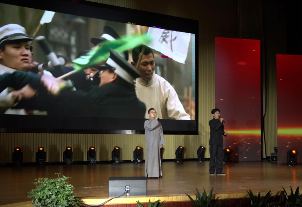 微电影结束,青年师生同台,为全校师生上演了一台生动而又振奋人心的情景思政课。