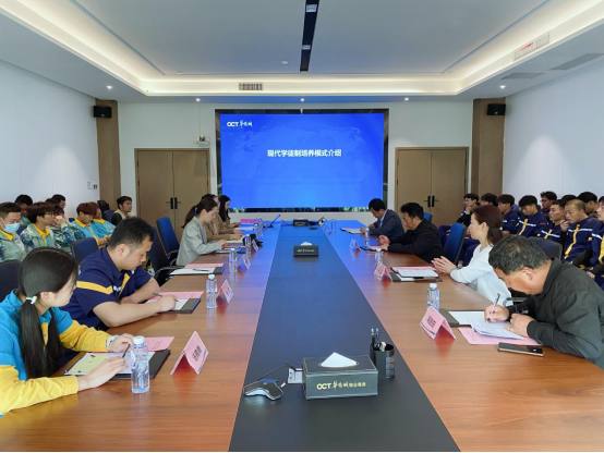 仪式上,华侨人力资源总监尹慧纯介绍了华侨城现代学徒制班的基本情况。她表示,华侨城与学校共建现代学徒制班是双方深化产教融合的结果,一是制定课程标准,培养符合华侨城发展技能人才;二是实施“三师”制度,促进学生全方位发展;三是实行标准化管理,确保学生技术技能和职业素养的提升。