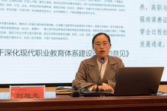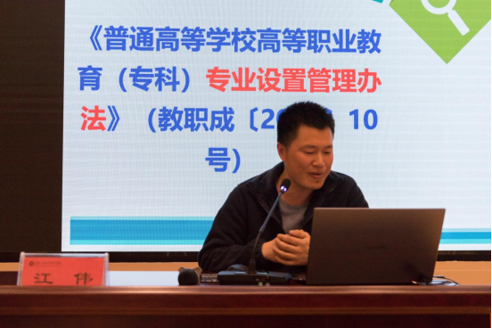 教务处处长刘旭光、汽车工程(新能源汽车)学院副院长江伟分别基于中观和微观视角围绕人才培养方案制定进行了“新形势下专业群人才培养方案编制的具体要求”和“智能新能源汽车专业群人才培养方案的实践”主题报告,详细解读了人才培养方案指导性意见及编制的具体要求、步骤等。